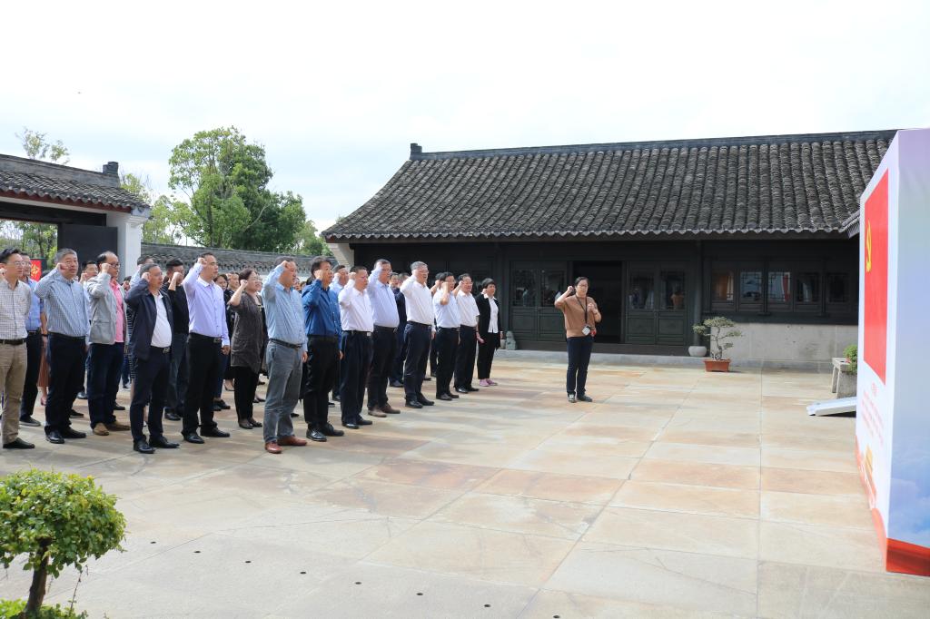 在古朴的院落里,领导干部们在宣誓墙前郑重地举起右手,在校党委委员、组织部(人事处)部长(处长)方晓红的带领下重温入党誓词,进一步强化党员初心、使命意识。