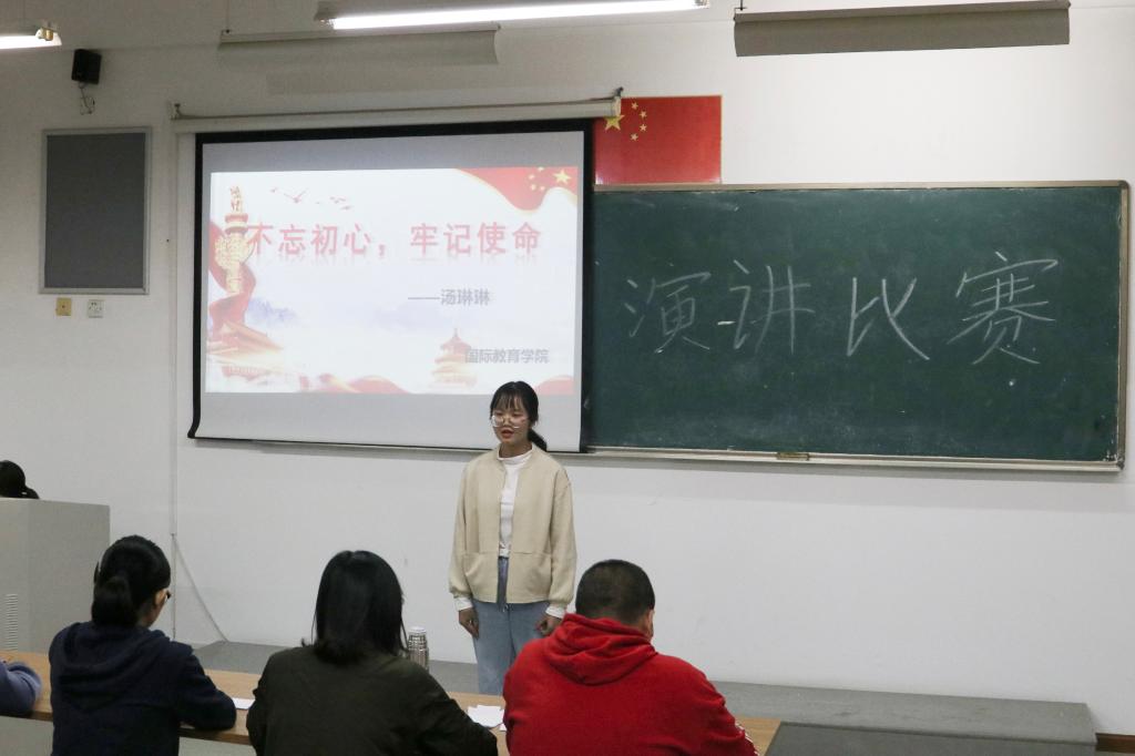 为了深入推进“不忘初心、牢记使命”主题教育活动,丰富校园文化生活,根据校团委相关活动安排,国际教育学院于10月20日晚上在1412教室开展了“我与祖国共成长”演讲比赛预选赛。本次比赛由2019级各班推选的10名选手参加,同学们通过自己的亲身经历讲述了一个个成长过程中的故事,在场师生深受感动。