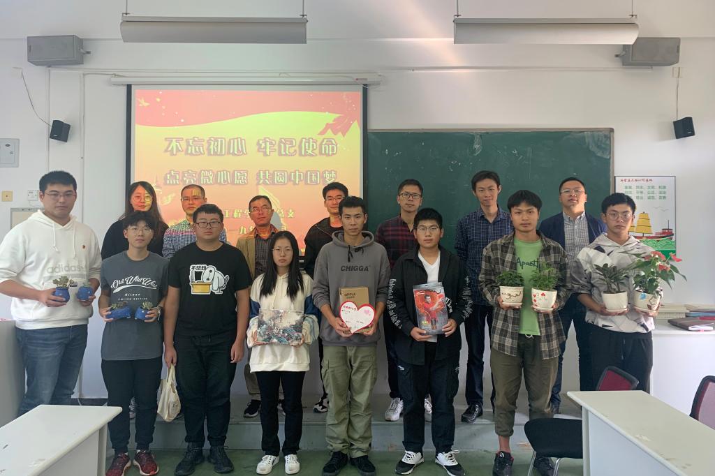 11月1日,船舶工程学院党总支在1312教室举行了“不忘初心、牢记使命——点亮微心愿、共圆中国梦”活动。船舶工程学院党总支前期通过走访、面谈等形式广泛征集了微心愿18条,在学校2019年党建文化节暨第四届廉政文化节闭幕式上由校领导、学院总支书记和支部书记认领了10条后,剩余8条微心愿继续在船舶工程学院全体党员中开展认领。