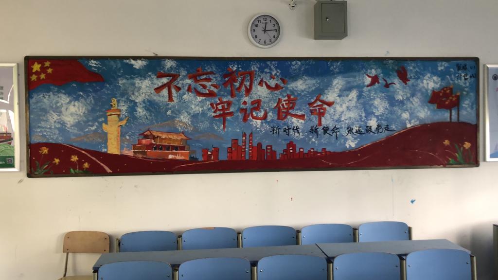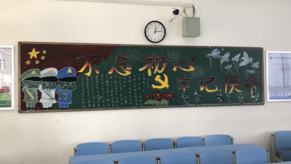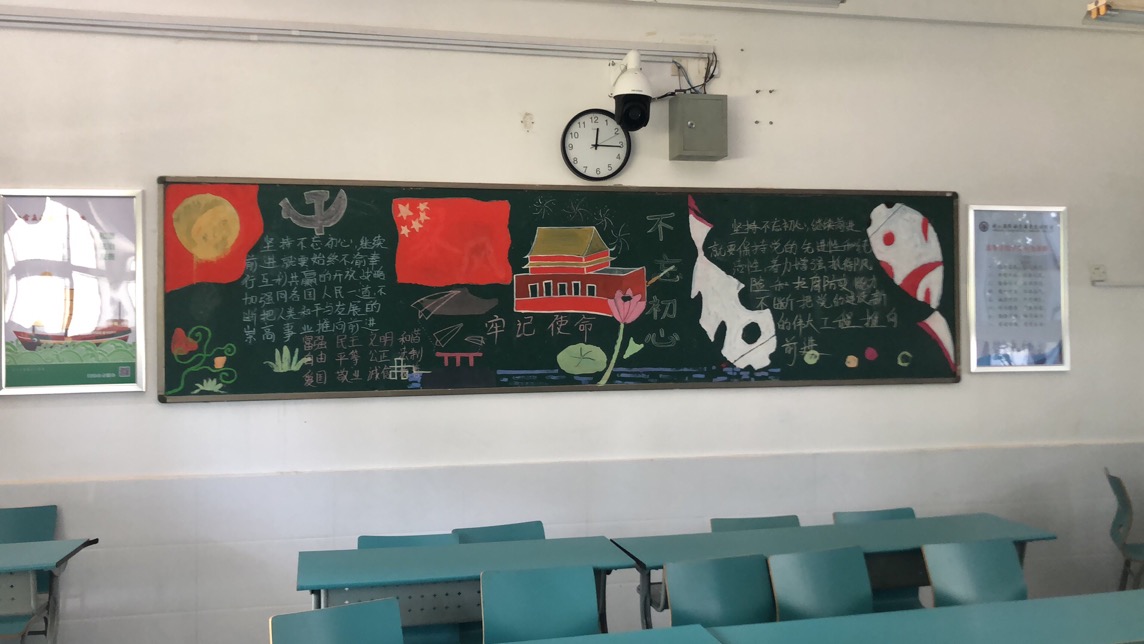 参赛班级的黑板报图文并茂,内容充实,突出“不忘初心、牢记使命”这一主题,体现了“不忘初心、牢记使命”主题教育对当代大学生的重要性和积极意义。最后,经过评比小组的认真评选,2019级计算机信息管理3班与2019级数字媒体艺术设计1班共同完成的主题黑板报获得第一名。