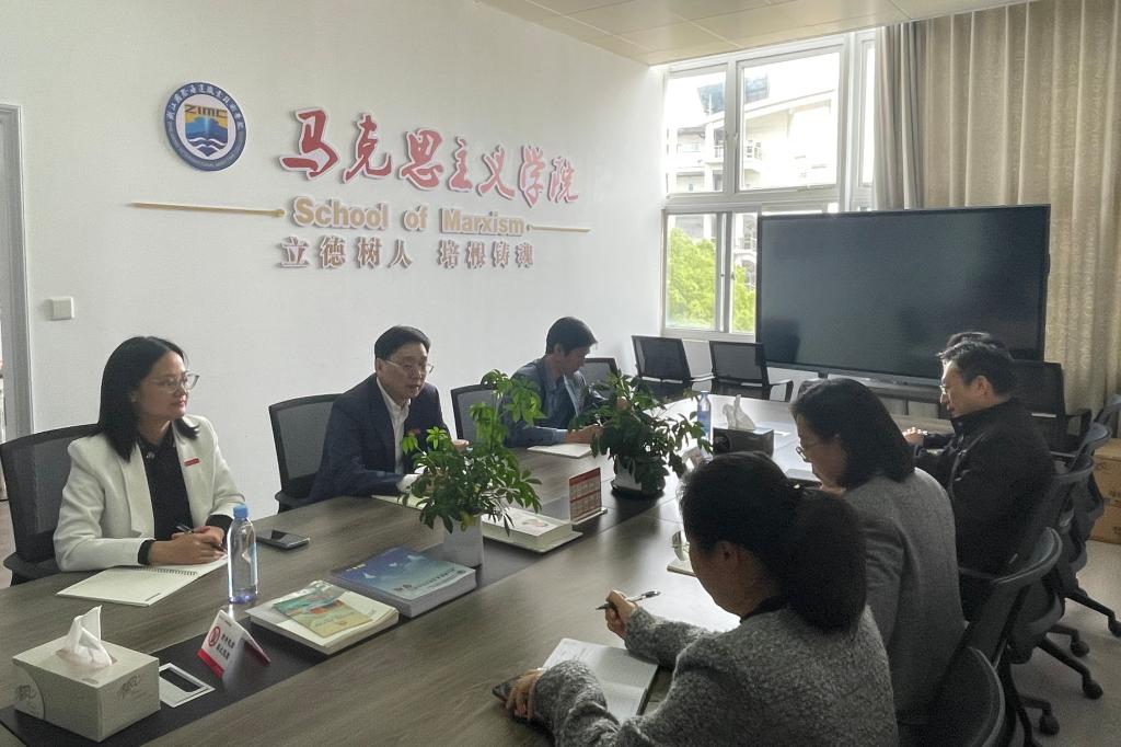 4月16日上午,校党委书记蔡志军来到马克思主义学院调研各项工作开展情况。校党委委员、宣传部(统战部)部长赵晖,组织部部长、航海工程学院党总支书记徐盈,马克思主义学院党政领导班子成员、课程团队负责人参加会议。