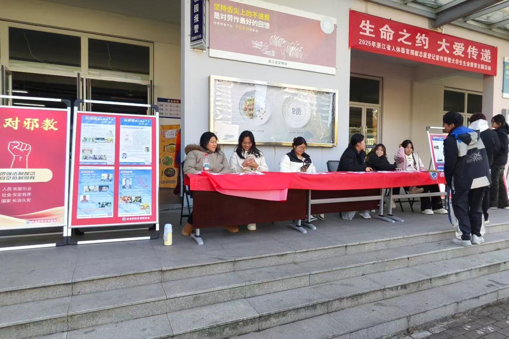 为进一步增强学生识别和抵制邪教的能力,筑牢校园反邪教思想防线,11月26日,我校反邪教社团在学生食堂门口开展“向邪教说不”主题宣传签名活动,吸引了大量师生驻足参与。